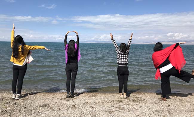 上午經(jīng)過海拔4120的雪山,下午就來到了美麗的青海湖!