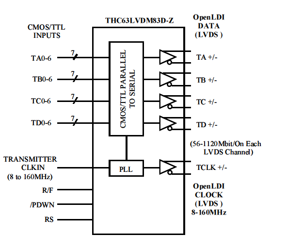 THC63LVDM83D可支持1080p/WUXGA像素的LVDS發送IC。中小型LCD播放器、監控攝像頭、多功能打印機、平板電腦等多個領域都有實際應用案列。