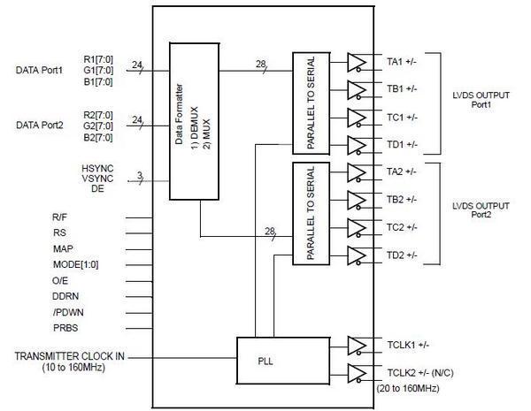 THC63LVD823B是可以支持1080p/QXGA像素的Dual Pixel Link LVDS發送IC。根據廣范圍的時鐘信號,TV信號可對應480p~1080p,PC信號可對應VGA~QXGA。此款芯片適用于LCD TV/監視器。
