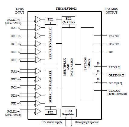 THC63LVD1022是可支援1080p/60HzDual Pixel Link LVDS Receiver IC。