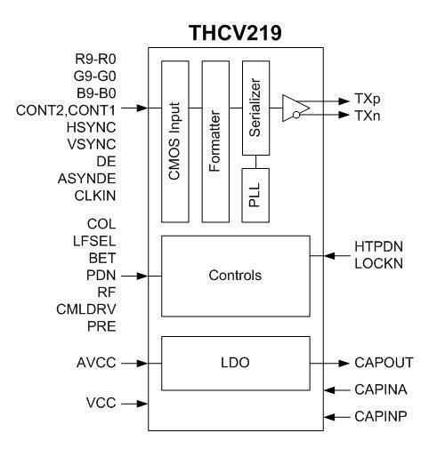 THCV219是將32位LVCMOS輸入信號轉換為V-by-One®HS信號的發送端LSI。