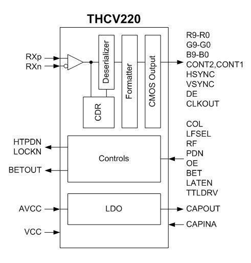 THCV220是將V-by-One®HS輸入信號轉(zhuǎn)換為32位LVCMOS信號的接收端LSI。